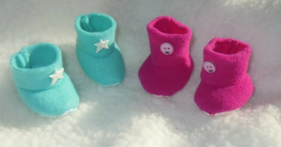 Zum Download steht hier ein Schnittmuster für warme Fleecestiefelchen bereit, es passt für Puppengrösse 40 - 45 cm